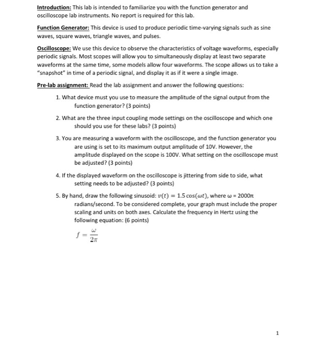 Ee 442 laboratory experiment 1 introduction to the function generator and the oscilloscope prelab questions.